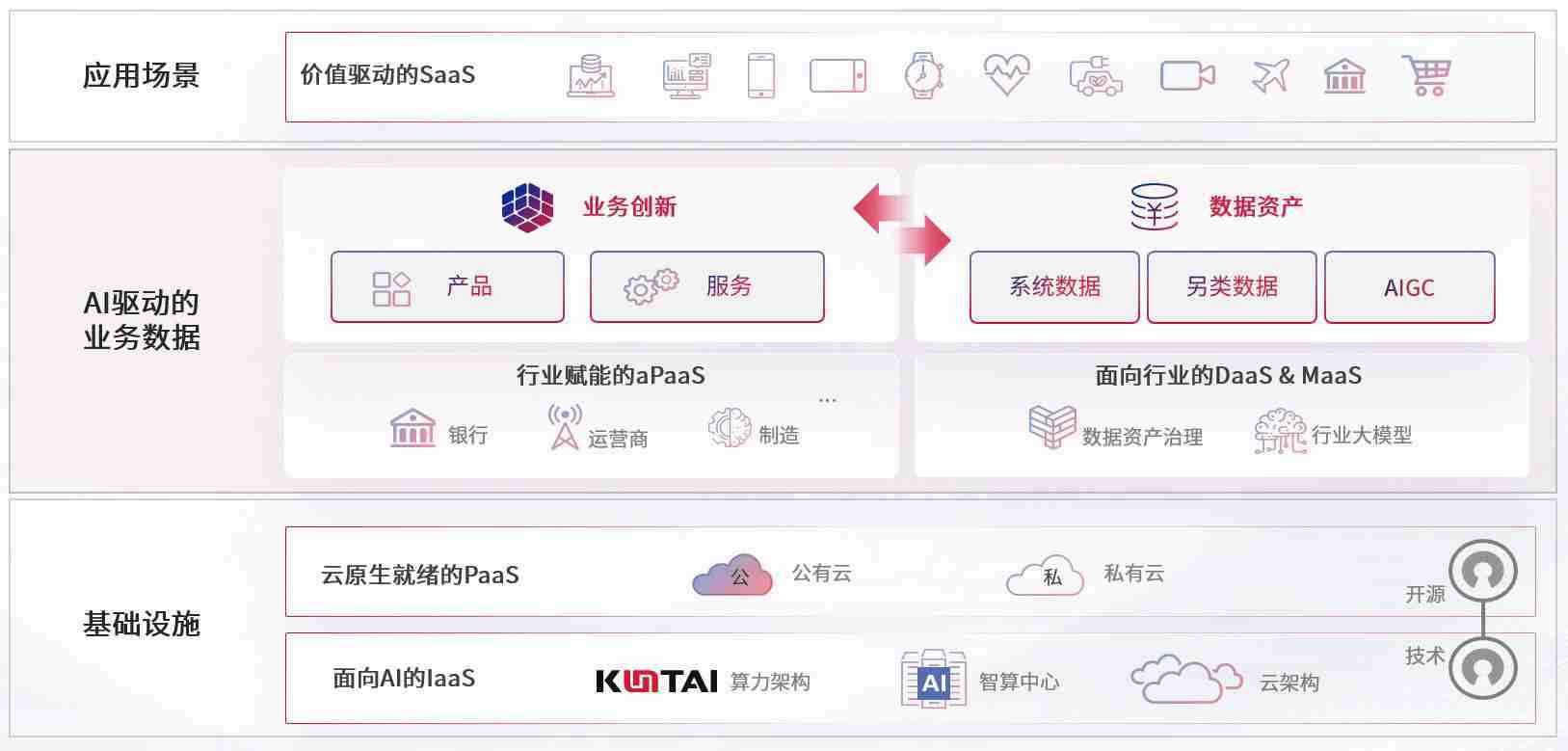 数字时代,,围绕企业数字化转型的关键要素,,NO钱包数码开创性的提出数云融合战略和技术体系框架,,,着力在云原生、、数字原生、、、、AI原生和信创产业上架构产品和服务能力,,为处在不同数字化转型阶段的快消零售、、、、汽车、、、金融、、医疗、、政企、、、教育、、运营商等行业客户提供泛在的敏捷IT能力和融合的数据驱动能力,,,构建跨界融合创新的数字业务场景和新业务模式,,助力企业级客户建立面向未来的核心能力和竞争优势,,,,全面推动社会的数字化、、、、智能化转型升级。。。。