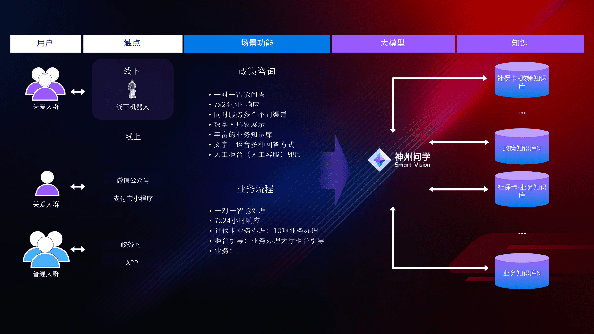 • 线上线下全覆盖:线上提供微信公众号、、支付宝小程序、、、、政务网、、、、app多种渠道,,,与线下机器人形成完整服务体系。。。。